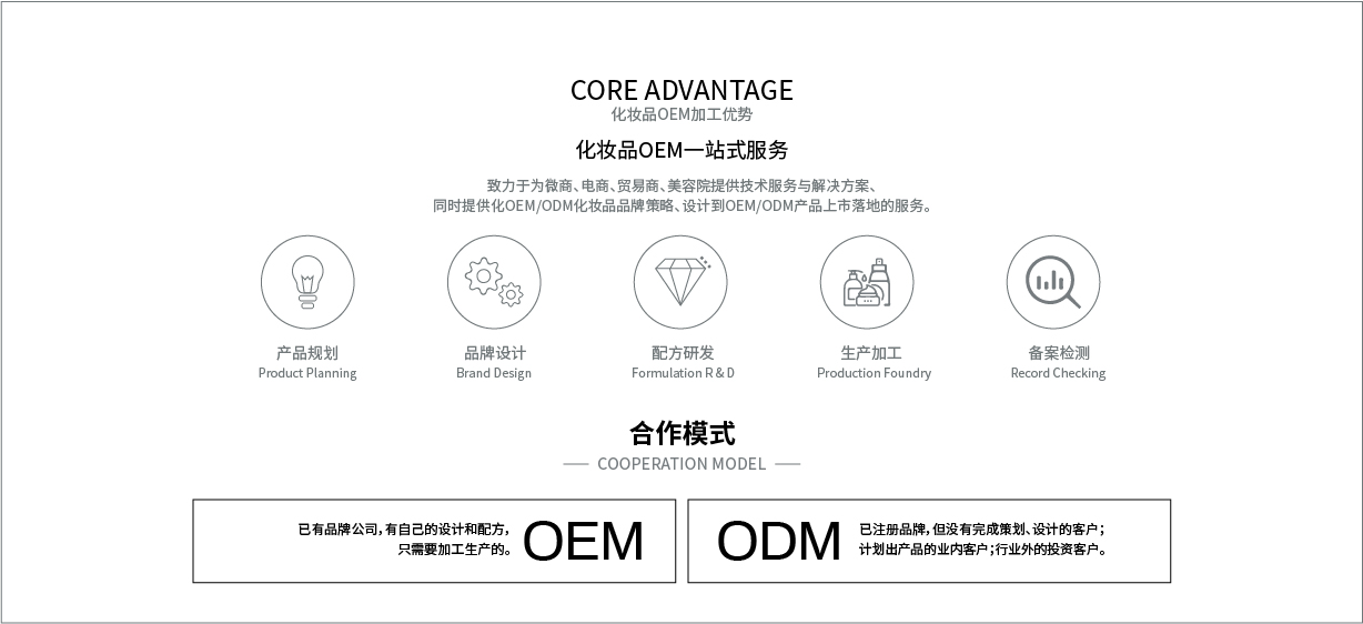公司始創(chuàng)建于2012年,經(jīng)過(guò)八年的健康發(fā)展,已經(jīng)成為可以從事妝字號(hào)、消字號(hào)、械字號(hào)等系列產(chǎn)品生產(chǎn)加工的大型企業(yè)。企業(yè)坐落在美麗的廣州白云區(qū)鐘樓潭鎮(zhèn),擁有面積超過(guò)15,000平方米的生產(chǎn)廠房。廠房寬敞明亮,設(shè)計(jì)科學(xué)新進(jìn),擁有十萬(wàn)級(jí)的生產(chǎn)車(chē)間,局部環(huán)境可以達(dá)到一萬(wàn)級(jí)別;設(shè)備多采用新進(jìn)的進(jìn)口設(shè)備,自動(dòng)化程度非常高,擁有一流的生產(chǎn)設(shè)施。工廠同時(shí)通過(guò)了ISO22716和GMCP質(zhì)量管理認(rèn)證,擁有一流的質(zhì)量管理體系。廠